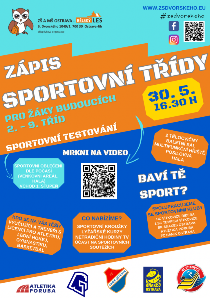 Nábor do sportovních tříd je určen jak žákům jiných škol, tak žákům nesportovních tříd naší školy, kteří by od šk. roku 2023 – 2024 chtěli přestoupit do sportovní třídy.