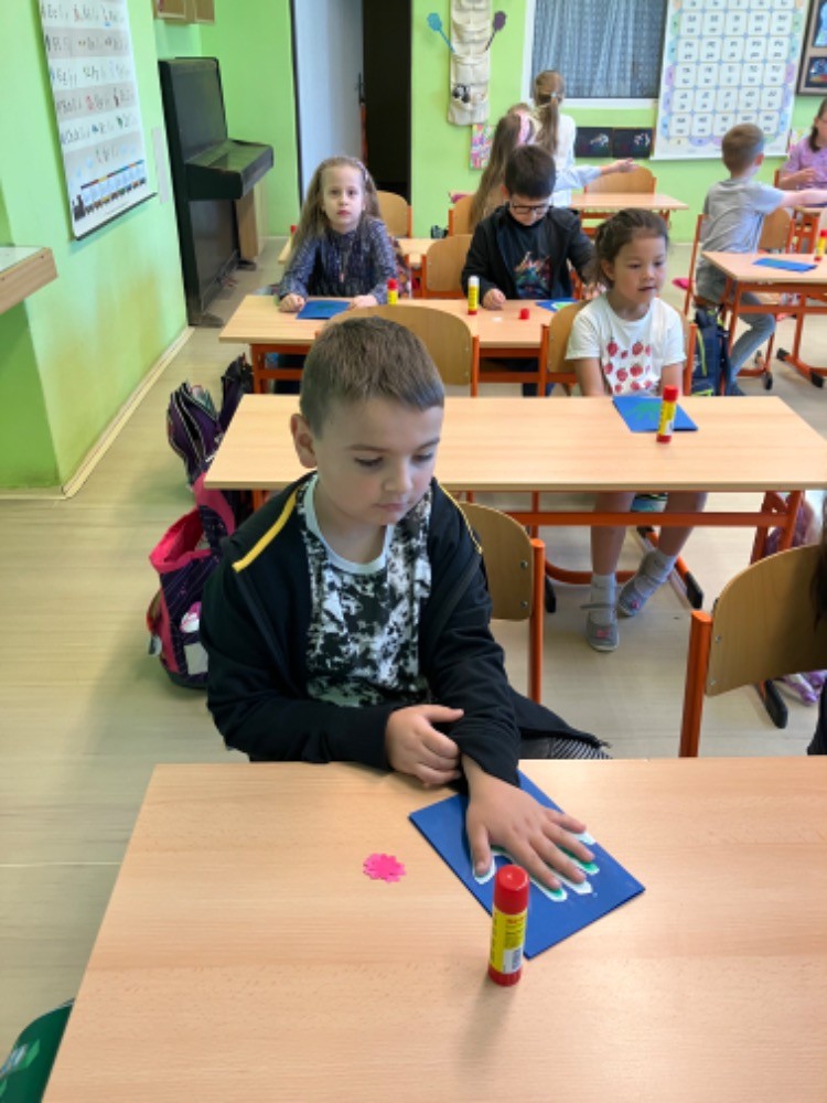 Děti z 1. B vyráběly v hodině Vv a Pč maminkám přání k svátku. M. Hrušková