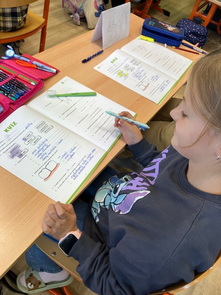 Projekt Zdravé zuby pokračuje i v tomto školním roce. Naučili jsme se od dentálních hygienistek, které potraviny zubům škodí a které prospívají a správnou techniku čištění zubů. Dozvěděli jsme se, co jsou fluoridy a jak zubům prospívají. Žáci 3.B a M. Hrušková