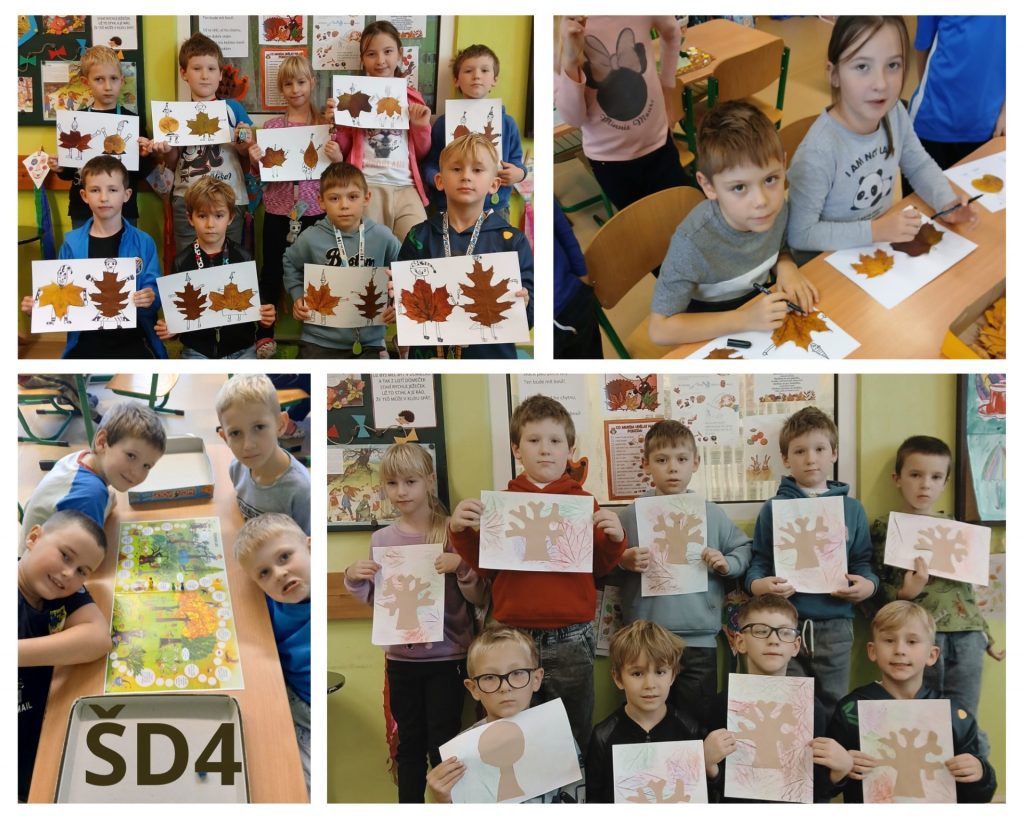 V naší školní družině jsme se věnovali během konce října stromům a keřům. Tento týden byl plný zábavy a poznání. Děti se dozvěděly, z jakých částí se skládá strom – kořeny, kmen, koruna, listy i plody. Také jsme si povídali o tom, proč jsou stromy prospěšné – poskytují kyslík, čistí vzduch, poskytují stín a domov pro mnoho živočichů. V rámci her jsme si zahráli lesní domino, hajný v lese, stromovou hru s kostkou i Kimovy hry, kde děti pomocí hmatu poznávaly plody stromů ukrytých pod šátkem. Ve výtvarné části jsme ztvárnili stromy a keře několika způsoby – temperovými barvami, tuží a dokonce jsme vytvořili čelenky z listí. Proběhlo i zkoumání s lupou, které děti moc bavilo. Zblízka mohly vidět třeba struktury bukvic, šišek, dvounažek, šištic i ořechů. Děti si odnesly spoustu nových znalostí o tom, proč jsou stromy kolem nás tak moc důležité.