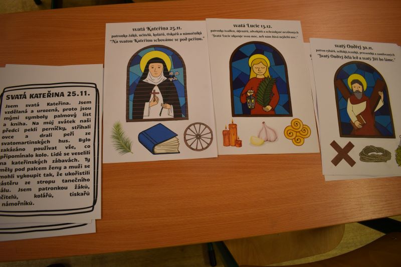 My ve školní družině jsme si toto čekání společně zkrátili Adventním putováním, akcí pro rodiče s dětmi. Návštěvníci se na stanovištích se svatými pomyslně vrátili do dávných dob našich předků. Se svatým Martinem si vyrobili podkovičku a zahráli si hru se svatomartinskými rohlíčky. U svaté Kateřiny si nazdobili perníčky a zatancovali si „kateřinský tanec“ se zástěrou. Se svatým Ondřejem věštili svou budoucnost pomocí hrníčků a lovili ryby. U svaté Barbory si nazdobili barborku květinami z pomerančové kůry a stavěli věž z kostek. Se svatým Ambrožem si vyráběli svíčky z včelích voskových plátů a mazali si chléb medem. U svaté Lucie si vyráběli lucerničky. Adventní putování jsme zakončili vystoupením dětí a rozsvícením vánočního stromečku. Děkujeme za vaši návštěvu a společně strávený čas. Krásný advent.