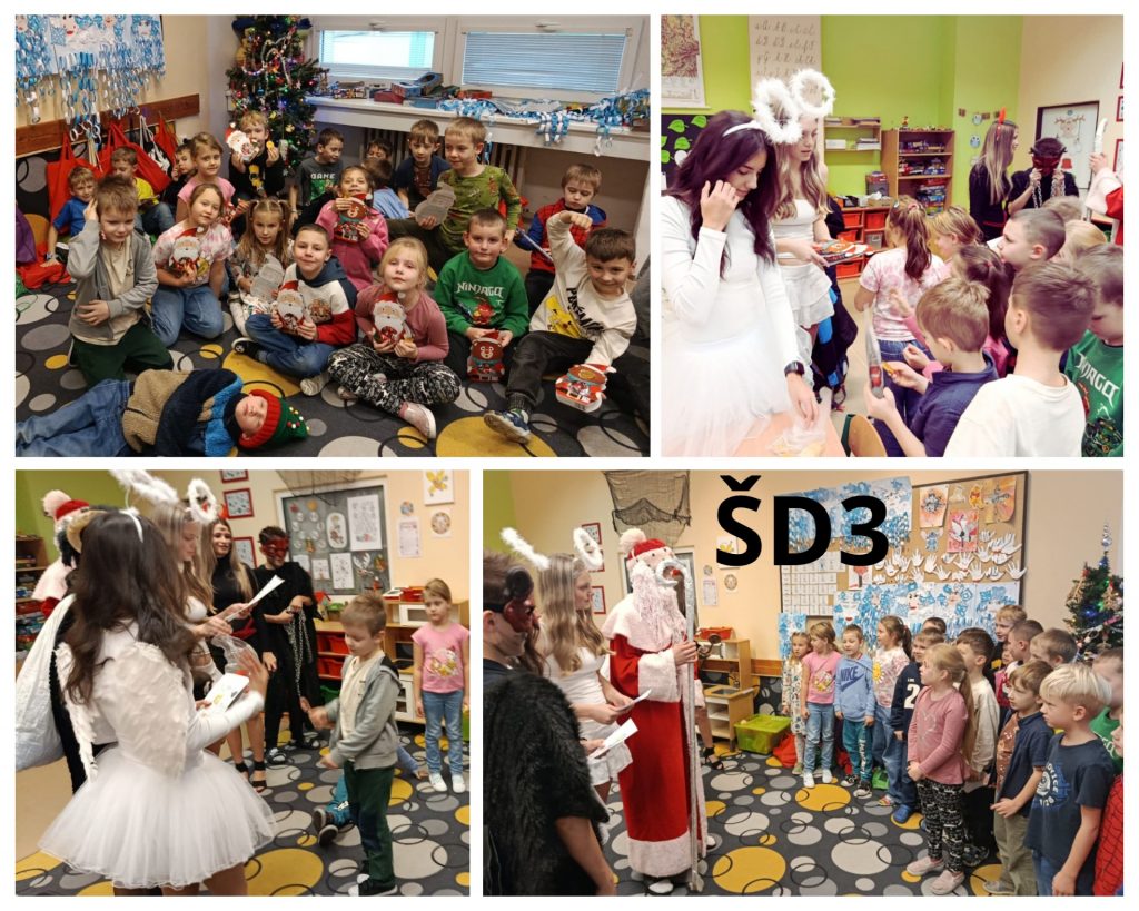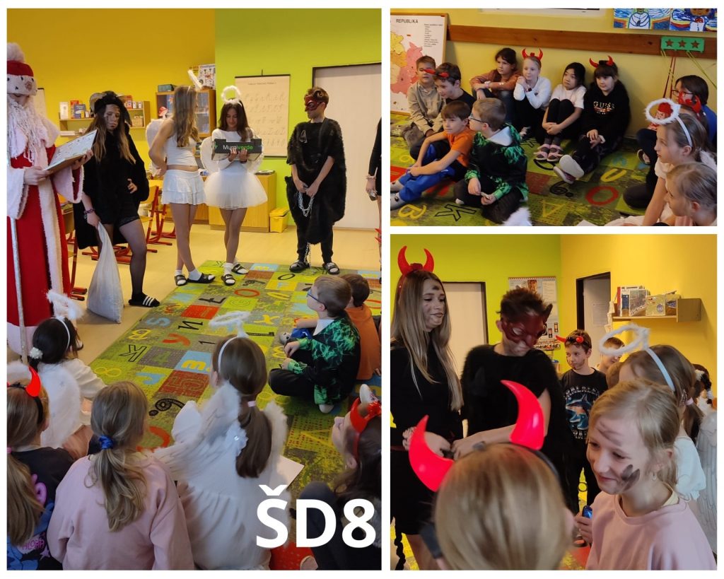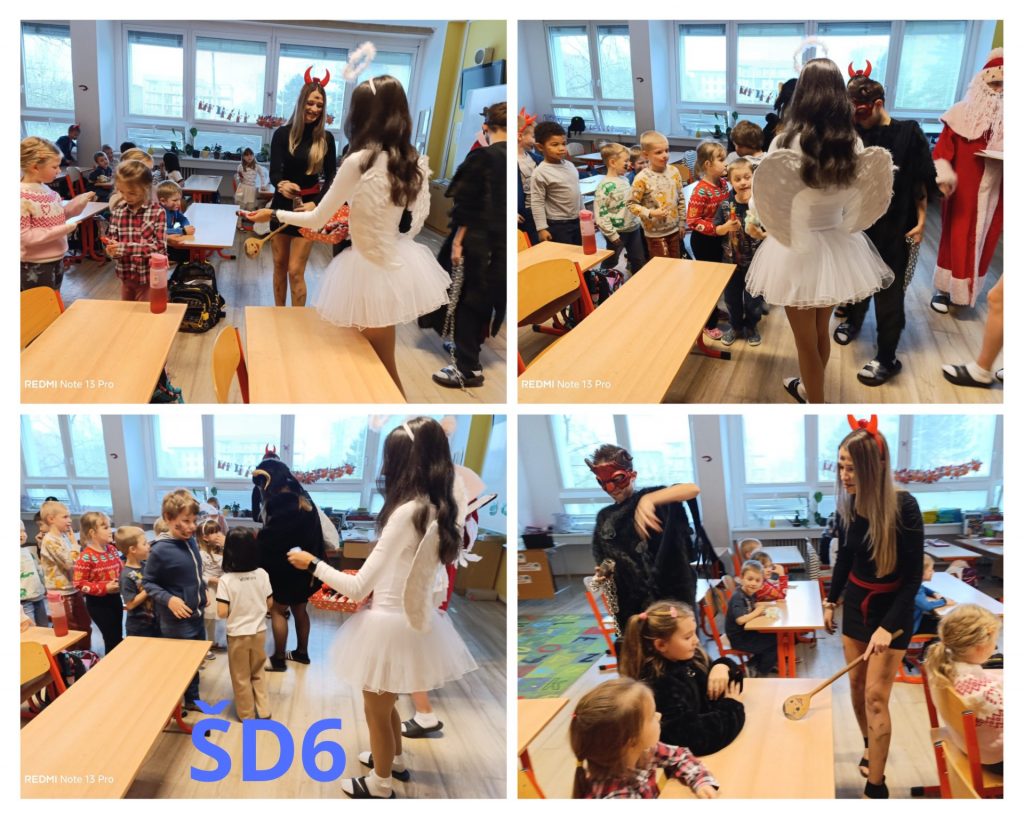 V pátek 5. 12. čekaly na zaklepání Mikuláše děti ve všech 9. odděleních školní družiny. Spolu s Mikulášem přišli samozřejmě i andělé a čerti. Mikuláš měl ve své nebeské knize o každém dítěti něco napsáno, většinu pochválil, některým připomněl, co by měli změnit či zlepšit…
