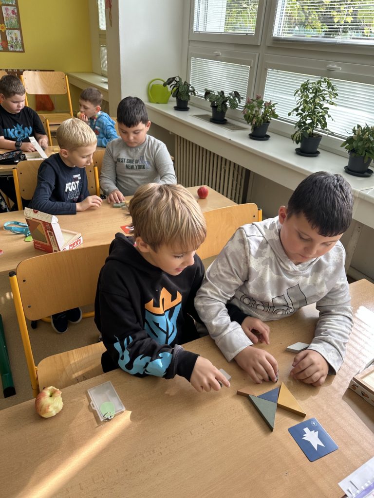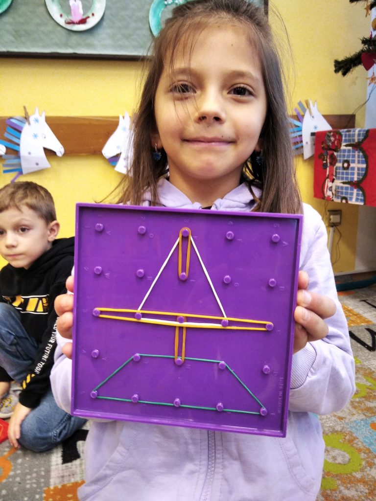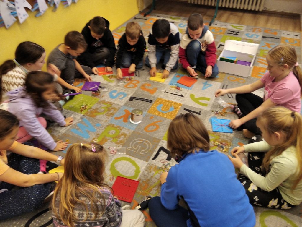 Klub logiky připravil pro mladší spolužáky práci s geoboardy, na kterých pomocí barevných gumiček vznikaly nejrůznější obrazce. Aktivita rozvíjela kreativitu, fantazii i matematické myšlení.