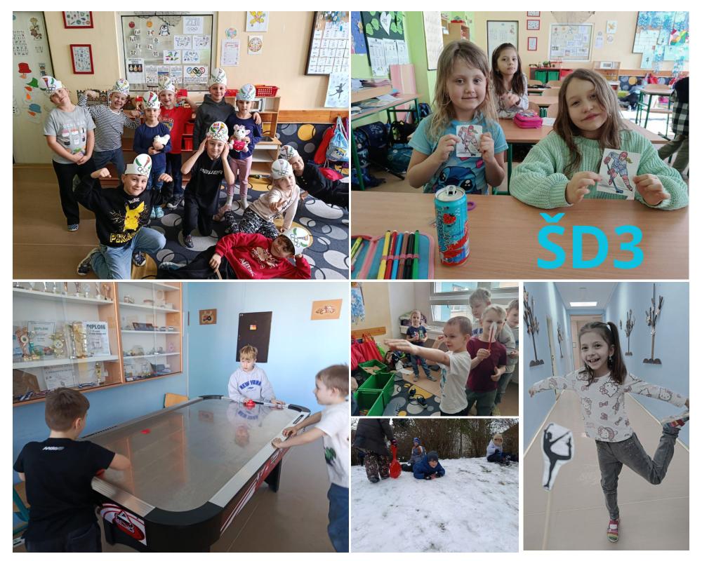 „Rychleji, výše, silněji – společně.“ V druhé polovině měsíce února si děti ze školní družiny udělaly zimní olympijské hry. Celým tímto sportovním svátkem pod pěti kruhy nás provázelo opravdové nadšení. Děti poznávaly olympijské symboly, maskoty, jednotlivé disciplíny a naše sportovce a medailisty. Zimní aktivity si užily na sněhu i uvnitř. Nejvíce je zaujal skok na lyžích (hod tužkou do dálky), dřevěný curling a curling s PET víčky, napodobování krasobruslařských tanečních pozic a také krasobruslení na cukru. Dvoutýdenní zimní olympiáda pro nás byla nejen sportovní událostí roku ale také časem plných jedinečných zážitků strávených pohromadě.