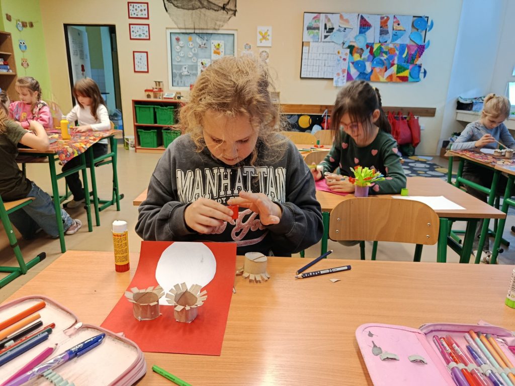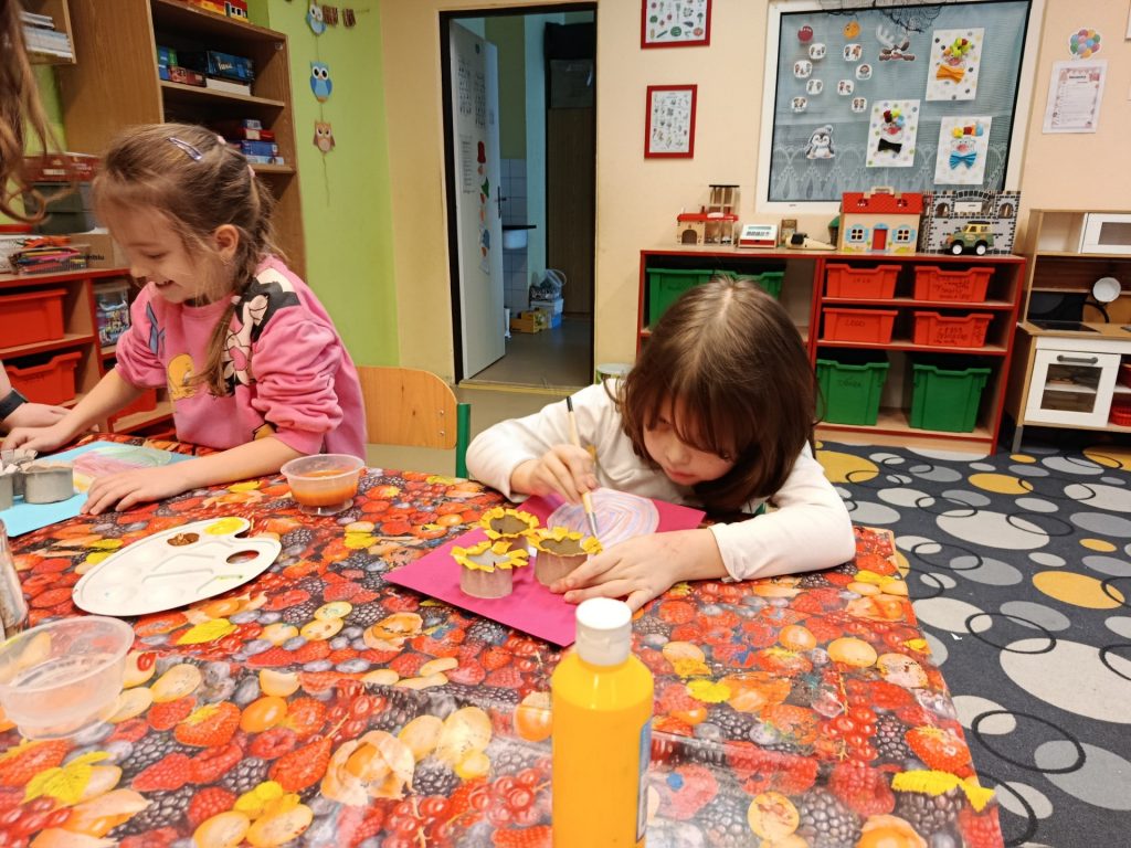 Venku svítí sluníčko a my jsme se v Malých umělcích zaměřili na jarní období, které se blíží mílovými kroky. Vytvářeli jsme vázy se slunečnicemi pomocí ručiček a také obkreslovali jarní motivy pastely.