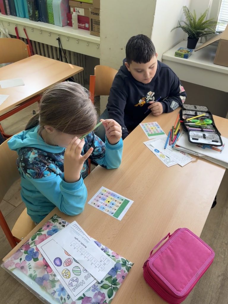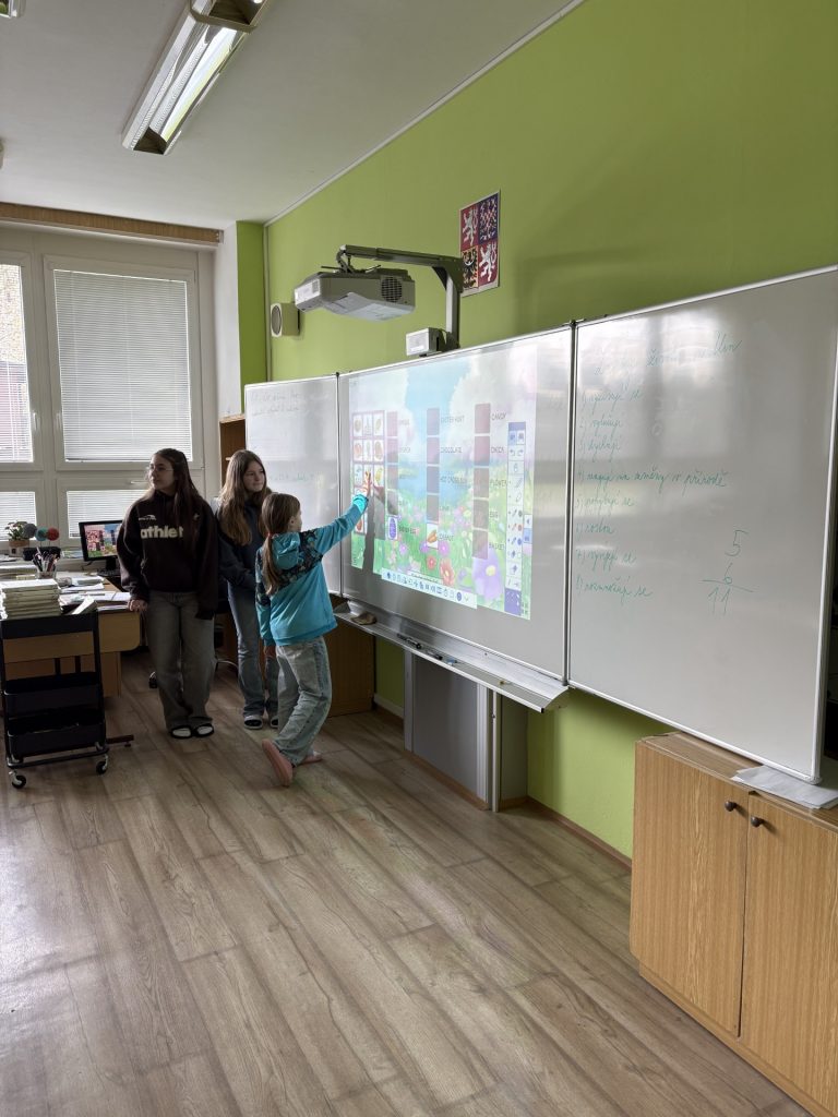 Pro žáky měly nachystané pestré aktivity, například bingo, běhací kvíz s tajenkou i online cvičení s novou slovní zásobou. Žáci se aktivně zapojili a bylo to pro ně příjemným a inspirativním zpestřením výuky. E. Přikrylová