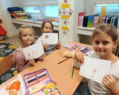 Od 13. do 17. října 2025 probíhal v naší školní družině projektový týden ke Dni bílé hole. Svět nevidomých děti zaujal a doslova pohltil. Seznámily se s Braillovým písmem, vyzkoušely si chůzi se slepeckou holí, velký zájem u nich vzbudily informace o výcviku vodících psů, samy si vyzkoušely, jak dobře vidí pomocí Snellenových optotypů, vysvětlovaly si se svými vychovateli přísloví o zraku. Děti na vlastní kůži zakusily život ve tmě: hrály sluchové a hmatové pexeso, kreslily samy sebe poslepu, poznávaly podle hmatu a sluchu kamarády, kreslily si na záda písmena a čísla. Tento týden plný netradičních zážitků přispěl k budování prosociálního cítění, ke zvýšení empatie a pochopení osob s handicapem, podpořil důstojnost nevidomých a uvědomění si hodnoty vlastního zdraví.